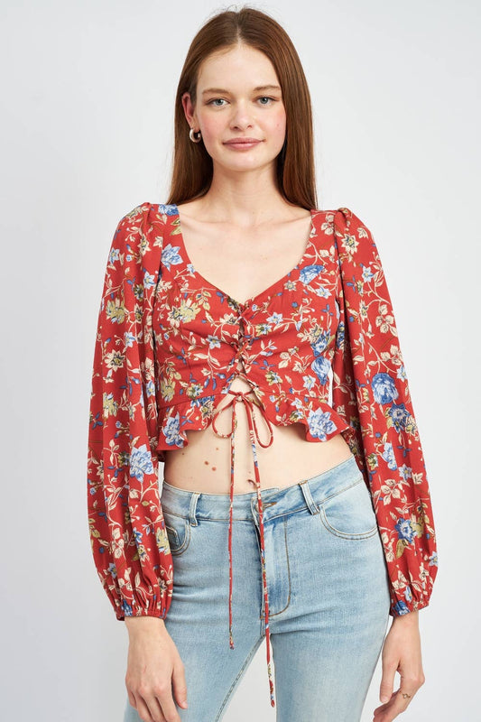 Lace Up Front Floral Top