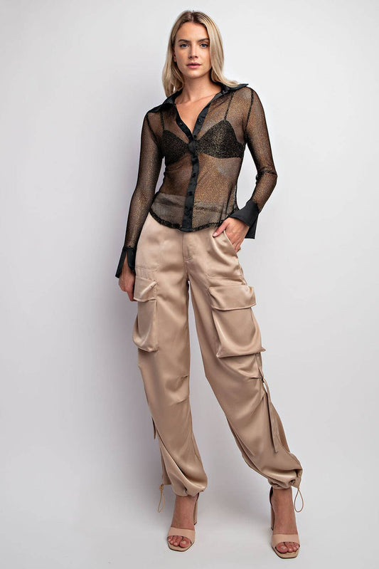 Satin Button Down Blouse