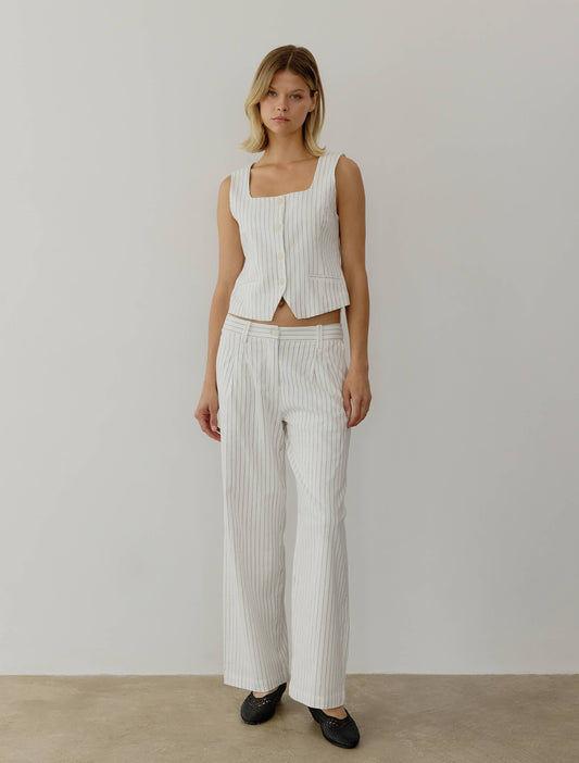 Striped Straight Leg Linen Trousers