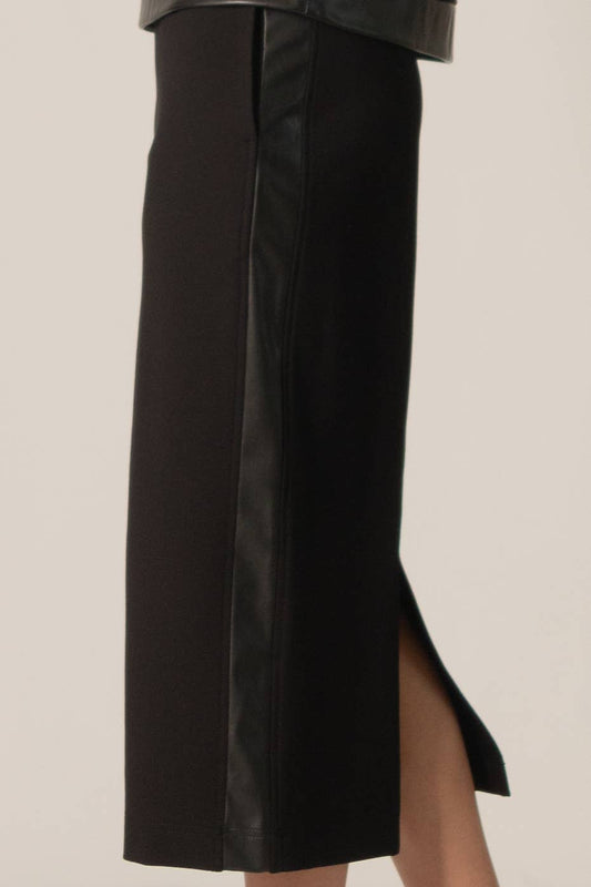 Fitted Ponte & Faux Leather Contrast Skirt