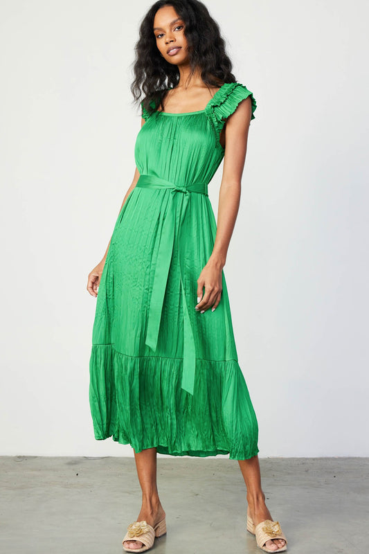 Crinkled Ruffle Shoulder Midi Dress