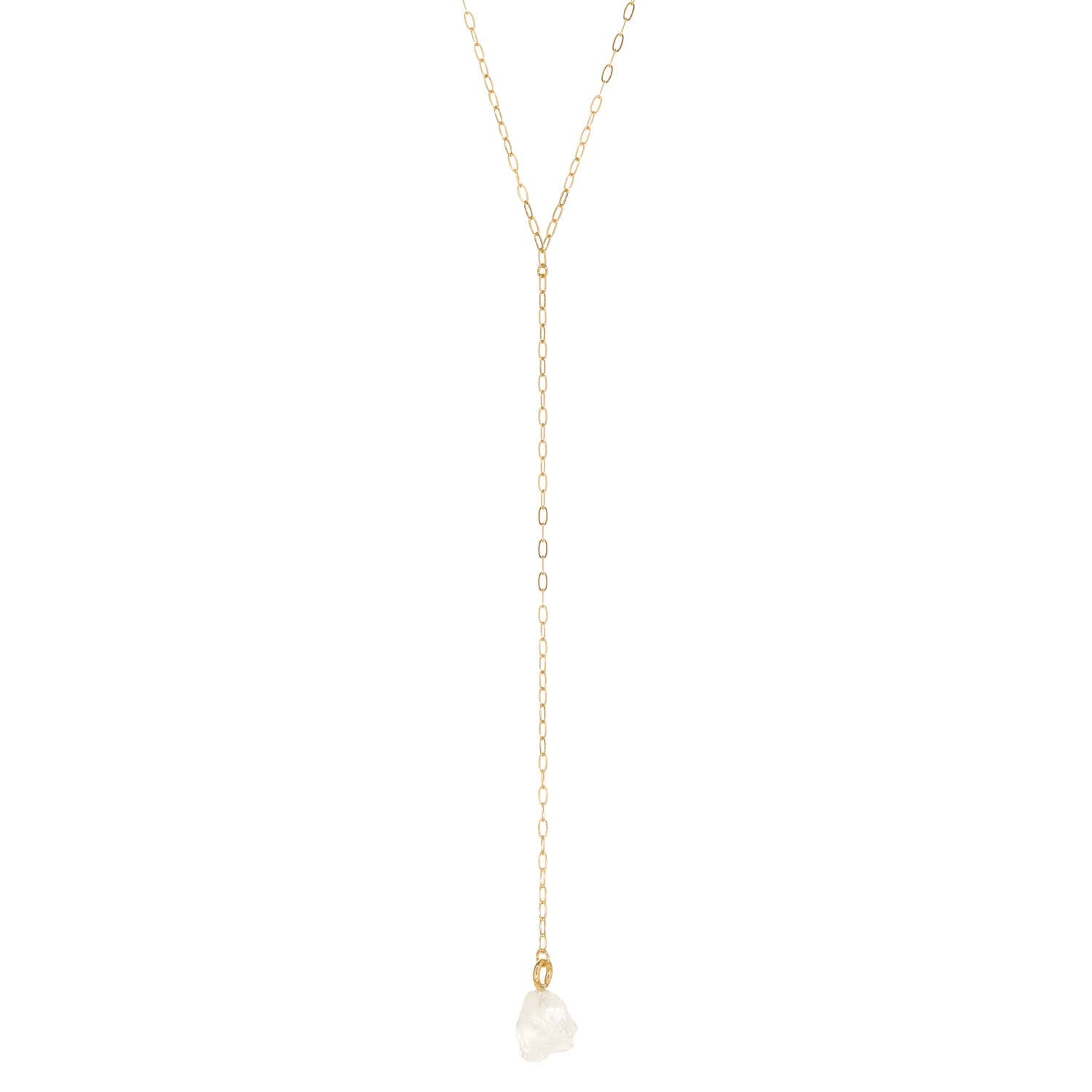 - Mini paperclip link lariat with raw clear quartz stone